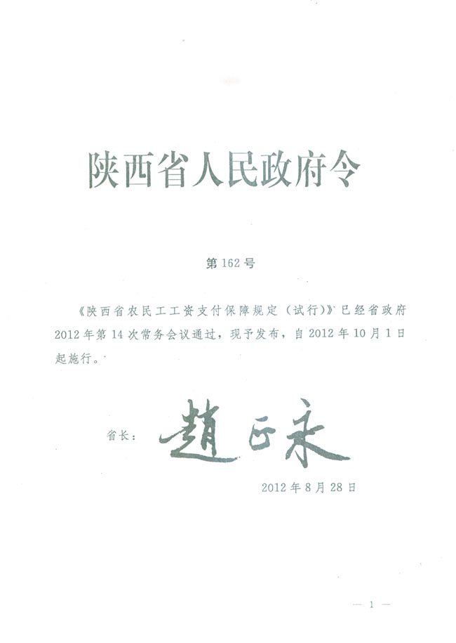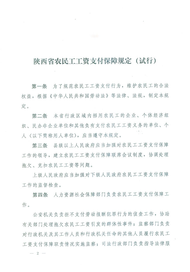 陜西省農民工工資支付保障規定(試行)