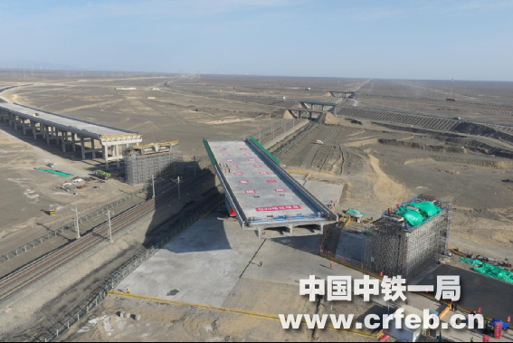 G30連霍高速哈密至吐峪溝段改擴建工程第九標段上跨蘭新鐵路1號大橋由新疆交通投資(集團)有限責任公司投資建設、中鐵一局承建,是G30連霍高速哈密至吐峪溝段改擴建工程的重點控制性工程。