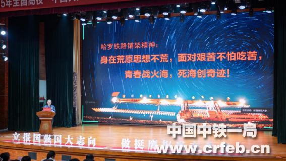 當馬建爭動情地說道:“如今,我們又再次向‘死亡之?!l起挑戰,再次向羅布泊腹地挺進,修建羅若鐵路。在無水、無電、無信號、無人煙的‘四無’之境,用青春的熱血與堅韌的意志書寫新時代的筑路傳奇”時,現場響起經久不息的掌聲。許多師生被建設者們無畏艱險、接續奮斗的精神深深打動,更為公司七十余年來建設新疆的偉大壯舉所震撼,真切感受到“中國共產黨人精神譜系”在新時代的生動踐行。馬建爭在最后號召青年學子,要勇當強國建設、民族復興征程上的開路先鋒,為了社會主義現代化強國建設,肩負起青年一代人的使命。