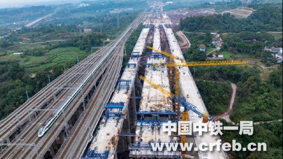作為全線重難點控制性工程,項目建設面臨多重挑戰(zhàn)。線路全程鄰近渝利鐵路運營干線,既有線日均通行列車118趟,列車最小間隔僅5分鐘,施工區(qū)域與運營線路最小凈距不足1米,行車密度高、作業(yè)面窄的特點對施工安全管控提出極高要求。對此,項目搭建“四大質量提升小組+六項工作專班”體系,創(chuàng)新推行“1+3”全程盯控機制,由項目領導班子按專業(yè)統(tǒng)籌推進,技術、安全、質量專員分區(qū)包保,將施工計劃精細分解至每一個鐵路施工“天窗點”,促進施工與運營的安全協(xié)同。