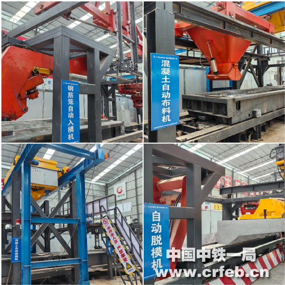 微創新技術成果《小型構件智能生產線》獲大賽(路基路面工程)銀獎。該成果采用智慧護欄生產線進行護欄預制,通過全自動化控制,流水線生產,將鋼筋加工、鋼筋籠半自動抓料裝置、混凝土布料振搗、模具開合-脫模、自動翻轉機構、智能養護及立體物流等關鍵環節在同一條“回字形”產線中閉環集成,實現了工序零交叉、物流單向流和節拍均衡,大幅度提升了生產組織效率與空間利用率,確保質量控制穩定。