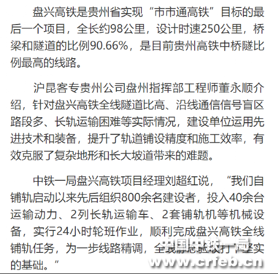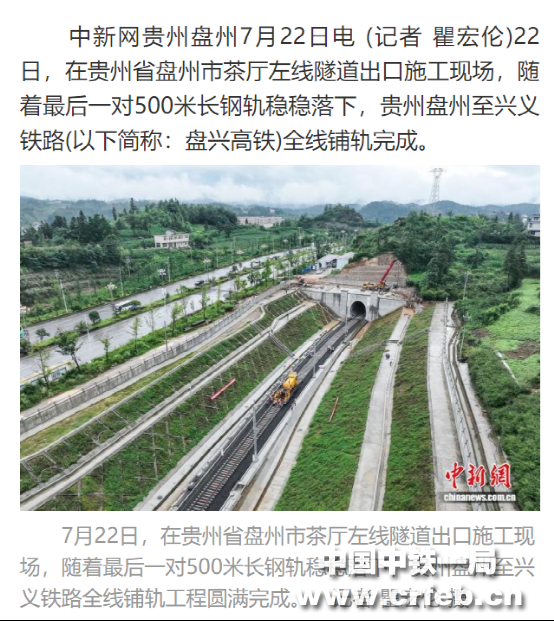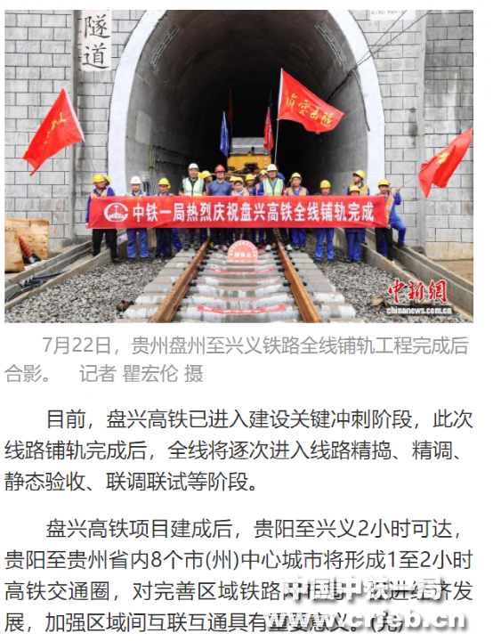 中國新聞網(wǎng):盤州至興義鐵路全線鋪軌完成