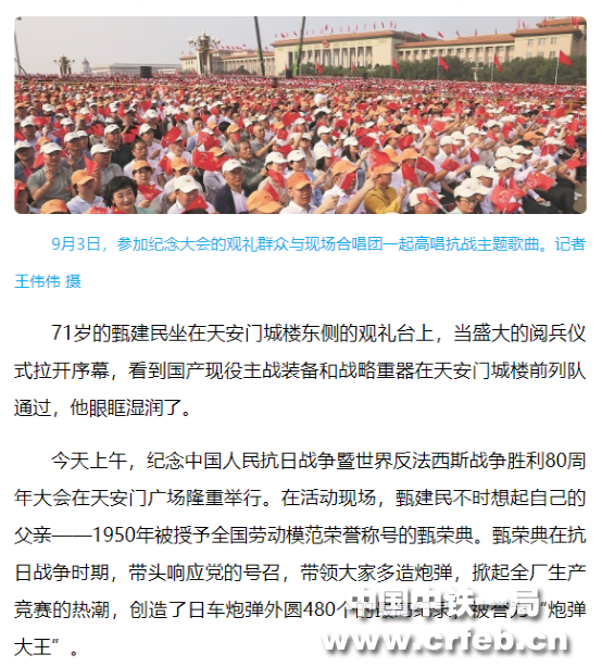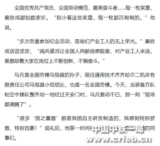 《工人日報》客戶端報道:竇鐵成參加閱兵感想體會