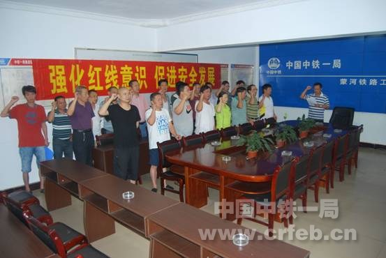 2014年6月,是我國第13個“安全生產月”,今年的活動主題是“強化紅線意識,促進安全發展”。宣誓結束后,大家還在寫有“強化紅線意識、促進安全發展”的橫幅上簽字。