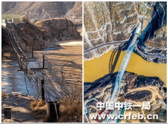韓城龍門鐵索橋與蒙華鐵路龍門黃河大橋