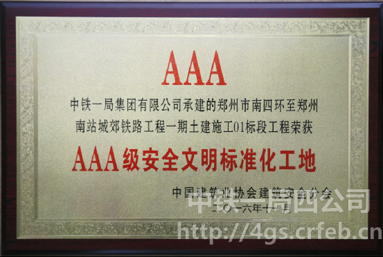榮獲全國“AAA級安全文明標準化工地”