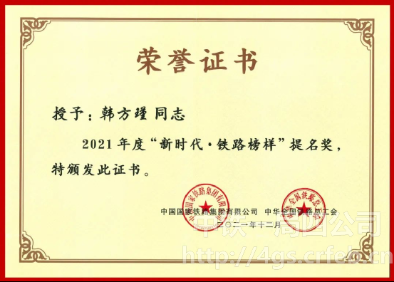 “新時代·鐵路榜樣提名”榮譽(yù)證書
