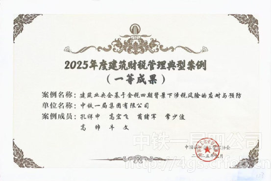 近年來,中鐵一局四公司堅持以推動“四實五型”機關建設為目標,在管理實踐中不斷積累經驗、優化方法,為企業稅務管理等核心工作提供了堅實支撐。此次獲獎不僅是對公司稅務管理工作的高度認可,更是企業始終踐行“依法納稅、合規經營、風險可控”稅務管理理念,全面落實“四型、四化、四提升”工作要求的有力印證。未來,公司機關將抓細抓實“四實五型”機關建設、做優做強精細化、標準化管理、加大加強創新創效力度,不斷夯實稅務管理根基、提升服務保障能力,為企業高質量發展注入更強動力,為建筑行業財稅管理創新貢獻更多“一局方案”。