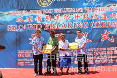基里巴斯基礎設施部部長特克伊吾阿·塔拉斯、塔布諾斯市市長貝泰羅·巴拉莫、中鐵一局東南亞分公司、四公司相關負責人,以及基里巴斯基礎設施部、塔布諾斯市政府相關官員,當地長者代表、項目參建員工、周邊社區居民等300余人參加開工儀式。