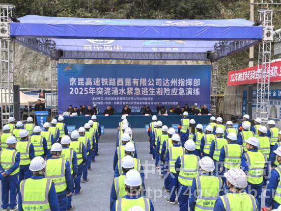 11月21日,京昆高速鐵路西昆公司達州指揮部2025年隧道突泥涌水緊急避險逃生生應急演練在西渝高鐵項目向陽一號隧道進口舉辦。西昆公司達州指揮部、中鐵二院、北京鐵城、中鐵一局西渝高鐵康渝段站前二標項目部、四公司等相關(guān)負責人出席活動,100余名人員參加演練。