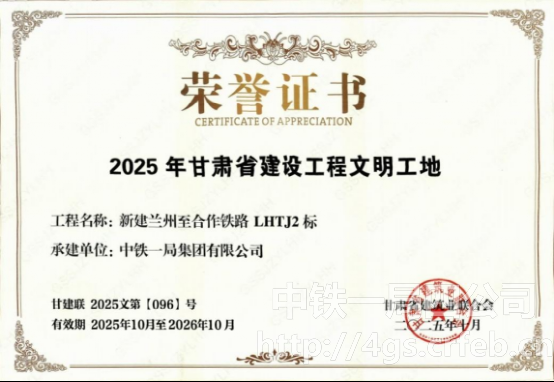近日,由中鐵一局承建的蘭合鐵路項目榮獲“2025年甘肅省建設工程文明工地”稱號,這一榮譽不僅是對項目團隊精益管理成效的權威認可,更樹立了行業施工新標桿。