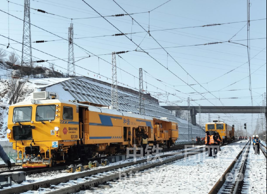 大機搗固車進行三搗兩穩(wěn)作業(yè)