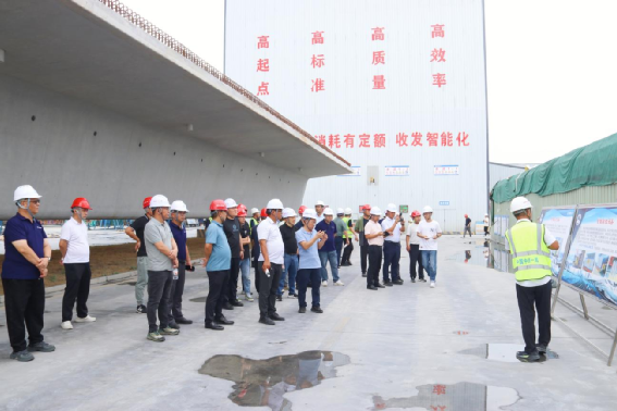觀摩團一行先后走進試驗室、拌和站與三工區梁場,仔細察看臨建工程的細節設計與功能布局,直觀感受中鐵一局標準化建設的落地成效。在項目部講解人員的引導下觀摩人員從數據實時采集、智能調度配料,到設備遠程監控,結合拌和站從“人工盯守”到“智能值守”的實踐案例,詳細了解了項目拌和站信息化技術。此外,觀摩人員還了解了臨建工程建設標準化選址、模塊化搭建的實戰經驗。在三工區梁場依次了解了梁場試驗室、信息化中心、鋼筋加工廠、制梁存梁區、物資庫房內的創新成果,引得觀摩團成員頻頻舉起手機拍照記錄關鍵信息。針對日常管理體系,項目部相關人員以“高起點謀劃、高標準開局、高質量建設、高效率推進”的理念為核心,逐個解讀標準化管理在臨建階段的全流程應用,從方案策劃到落地執行的管理模式獲一致認可。