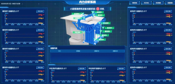 用好智能安全監控系統這一“安全防護網”。掛籃智能安全監控管理系統由數據監控系統與遠程數據后臺系統構成,構建起雙重安全防線。數據監控系統全天候緊盯掛籃錨固力、錨桿拉力等七個關鍵指標,一旦數據觸及預警值,立即觸發聲光報警并自動停止相關作業,規避安全風險。遠程數據后臺系統覆蓋PC端與移動端,管理人員通過云平臺即可實時掌握施工現場進度與安全狀況,實現“足不出戶控現場”。目前,該系統已成功取得如《基于物聯網的自動化安全監測系統》《基于物聯網的大跨度箱梁安全監測平臺》等軟件著作權,彰顯了其技術的自主創新性與行業認可度。