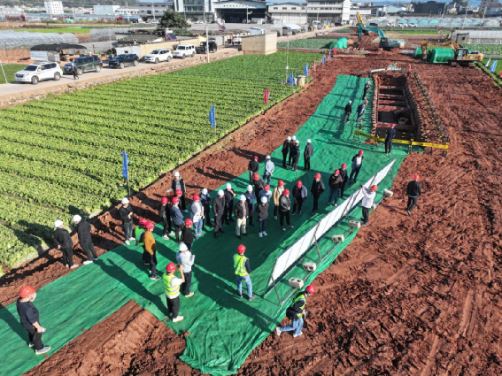 在項目技術團隊的不懈努力下成功攻克了三大核心挑戰:一是破解復雜地質難題。針對管槽基礎多為砂質粘土層,地質以黏土、砂質粘土及淤泥質土等易引發基坑涌水、邊坡失穩等問題,項目部推動工藝創新,采用鋼板樁支護結合振動沉樁技術,并通過改裝挖掘機實現一體化高效沉樁,快速構筑起安全穩定的基坑支護樁墻。二是實現管材科學選型。基于對不同區段地質條件與設計壓力的系統性評估,項目部在超高壓段落選用高強度的鋼管;而在需要適應地基變形且對耐腐蝕性要求較高的廣泛區段,則規模化應用了接口可靠、韌性優異的球墨鑄鐵管,從源頭上提升了管道網絡的適應性與耐久性。三是確保標準化施工落地。從精準的測量放樣、規范的溝槽開挖,到管材的精細化安裝與回填壓實,項目部將全流程作業納入標準化管理。在下管時對中線與高程的嚴格校準,球墨鑄鐵管承插接口的“清口、嵌圈、探尺驗證”標準化操作,以及回填作業嚴格的“分段、分層、分層檢測”閉環控制,所有環節均通過明確的流程與責任到人得以剛性執行。