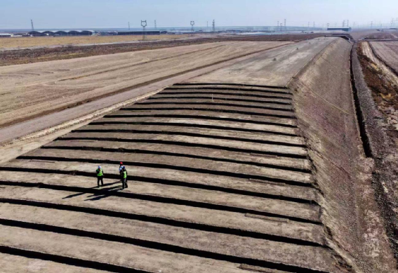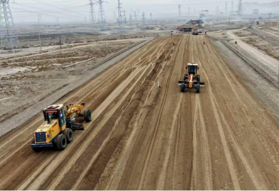項目部堅持把工藝工法工裝標準化作為重點,針對橋梁墩臺、連續梁、箱梁制架施工,路基填筑、骨架護坡、路基排水等工序,運用“五小四新”技術,以工裝保工藝,以工藝保質量,嚴格落實標準化施工,提升施工工效和質量。橋梁工程采用灌無憂技術、成孔檢測技術、機械法切割樁頭整體吊裝技術、墩身兩布一膜養護、自動張拉壓漿等四新技術,以及“三架三箱三防護”、墊石錨栓孔定位、墩身護面鋼筋卡具等工裝,有效解決了戈壁地區樁基施工難題,保證現場施工安全質量。路基施工嚴格執行標準化施工作業,路基填筑前先行開展工藝試驗,先后完成路基本體填筑、基床底層填筑、過渡段填筑工藝試驗,獲取第一手數據,為路基大面積填筑提供科學依據。在傳統“三階段、四區段、八流程”工藝基礎上,項目部引入平地機3D控制系統、路基連續壓實系統、路基沉降自動化監測系統、防侵限智能刷坡系統等一系列數智化系統,以及邊坡拱架開槽機、水溝一次成型機等新設備、讓路基防護工程既美觀又耐久。