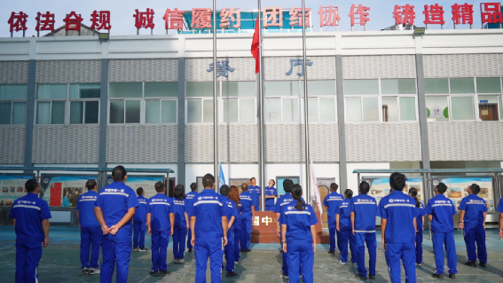 上午,全體職工身著整齊工裝,目光共同聚焦于旗桿方向。伴隨著雄壯激昂的《義勇軍進行曲》,五星紅旗冉冉升起,所有人自發肅立、行注目禮,嘹亮的歌聲在院內回蕩,瞬間點燃節日熱情。