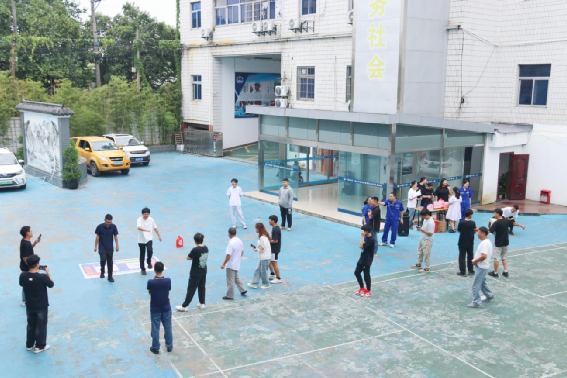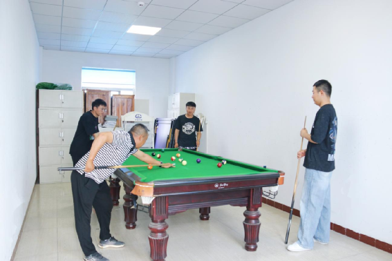 升旗儀式后,趣味互動活動隨即拉開帷幕。現場設置的“合力建塔”考驗著團隊的協作與默契;“同手同腳”游戲里,大家照著畫布上的圖案蹣跚前行,引得圍觀人群陣陣歡笑;“原地踏步走”比拼細節,大家屏氣凝神保持節奏,生怕因一步出圈落后;而“套圈圈”區域最是熱鬧,職工和家屬們圍著擺滿日用品的獎品區躍躍欲試,套中獎品時的歡呼聲響成一片。此外,臺球桌旁選手們專注推桿,撲克牌桌前伙伴們默契配合。整個上午,項目部歡聲笑語此起彼伏,儼然一片歡樂的大家庭聚會場景。