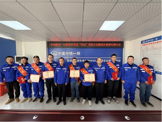 湖北麻城訊:歲序更替啟新程,凝心聚力謀發展。1月24日,中鐵一局合武高鐵2標一分部2025年“先進集體、先進個人”表彰會暨職工民主管理代表大會在分部會議室隆重召開。