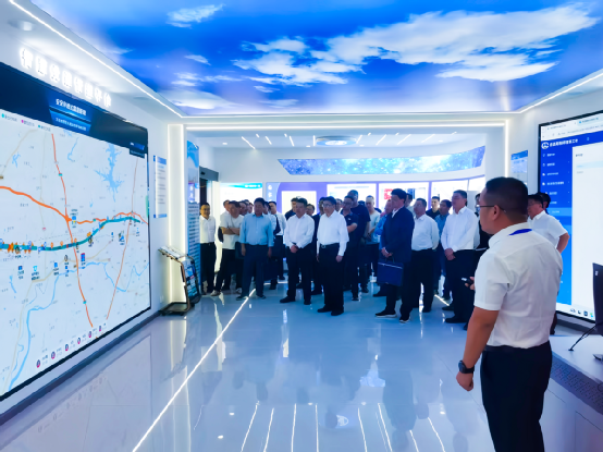 觀摩團先后到中鐵一局承建曹家坳村跨京九鐵路特大橋(48+48)mT 構(gòu)轉(zhuǎn)體連續(xù)梁 66 號墩工點和項目部安全智控中心,實地觀摩穿透式監(jiān)督管理落實和智能化應(yīng)用情況。