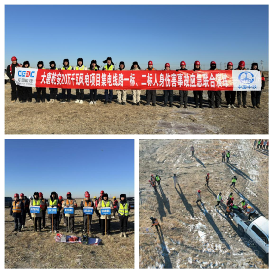 為強化施工安全管理、提升應急處置能力,項目部還聯合二標段共同組織“大唐乾安20萬千瓦風電項目集電線路一標、二標人身傷害事故應急聯合演練”。演練聚焦鐵塔組立、線路架設等后續核心施工環節,針對可能發生的高空墜落、機械傷害等人身傷害事故場景,嚴格按照“實戰化、標準化”原則設計流程。演練前,項目部安全管理團隊組織參演人員開展應急處置培訓,明確應急指揮、現場救援、醫療保障、后勤支持等各小組職責;演練過程中,參演人員響應迅速,規范完成事故上報、現場警戒、傷員救治、設備搶修等應急處置步驟。此次演練不僅規范了應急響應流程,更提升了團隊協同作戰能力,為后續施工安全筑牢保障。