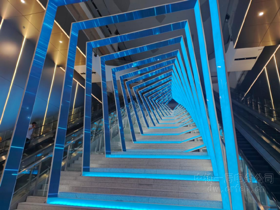 歷經28天連續攻堅,在項目領導的坐鎮統籌與全體人員的共同努力下,“環影光鏈”景觀樓梯順利完工,為業主交出了一份滿意的答卷,獲得業主單位一致好評。如今,這座景觀樓梯在白云機場T3站廳層驚艷亮相:當旅客踏上臺階,流光隨腳步緩緩蔓延,螺旋造型與動態光影交織出震撼的視覺體驗——既實現了軌道交通與機場樞紐的高效銜接,更成為白云機場的標志性景觀。