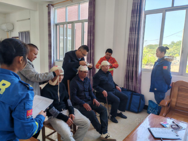 創(chuàng)傷處置模塊采用“理論+實(shí)操”相結(jié)合的方式展開,重點(diǎn)覆蓋頭部包扎、骨折包扎與止血處置。講師現(xiàn)場(chǎng)示范三角巾、繃帶的規(guī)范使用方法,從傷口清潔、加壓止血,到骨折固定、包扎松緊度控制,全程細(xì)致講解。“頭部包扎要覆蓋全傷口,避免壓迫眼部和耳部,骨折固定需遵循‘先固定后搬運(yùn)’原則,夾板長(zhǎng)度要超出骨折兩端關(guān)節(jié)”,講師邊操作邊強(qiáng)調(diào)注意事項(xiàng),參訓(xùn)人員分組實(shí)操練習(xí)時(shí),講師逐一巡視指導(dǎo),及時(shí)糾正不規(guī)范動(dòng)作,確保每人熟練掌握操作流程。