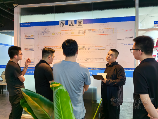 為了確保能實(shí)時(shí)了解工程進(jìn)度,駱曉帶領(lǐng)工程技術(shù)人員,系統(tǒng)梳理施工點(diǎn)位,細(xì)化工程節(jié)點(diǎn),明確完成時(shí)限,精心繪制了工程“作戰(zhàn)圖”(進(jìn)度形象圖),用不同顏色條加以動(dòng)態(tài)標(biāo)注。每周碰頭總結(jié)會(huì)結(jié)束后,各專業(yè)負(fù)責(zé)人及施工隊(duì)帶班人員均會(huì)齊聚 “作戰(zhàn)圖”前,明確施工重點(diǎn),商討細(xì)化方案細(xì)節(jié),確保責(zé)任到人、實(shí)時(shí)跟進(jìn)。