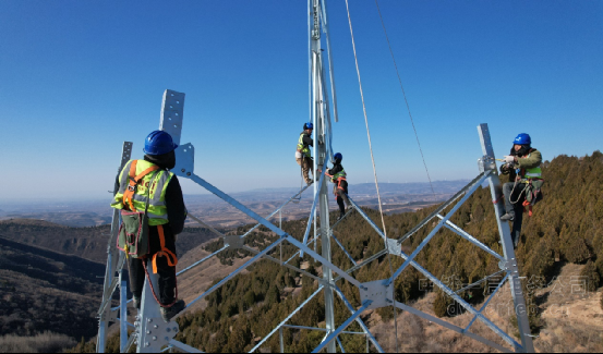 此時(shí),筆者才恍然大悟,原來BCG5號(hào)塔施工的艱難不僅僅是澆筑難這一單一原因,還源自于吊裝機(jī)械無法施展。筆者通過望遠(yuǎn)鏡遠(yuǎn)眺BCG5號(hào)塔,山頭上,工人們正在利用抱桿將塔材拉至高空,而后多人合作,在高空一根一根的單獨(dú)拼裝。