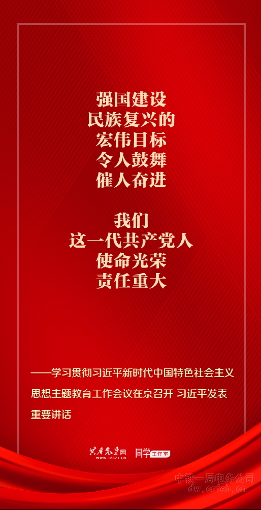 ●我們要以這次主題教育為契機,加強黨的創(chuàng)新理論武裝,不斷提高全黨馬克思主義水平,不斷提高黨的執(zhí)政能力和領導水平,為奮進新征程凝心聚力,踔厲奮發(fā)、勇毅前行,為全面建設社會主義現(xiàn)代化國家、全面推進中華民族偉大復興而團結奮斗。