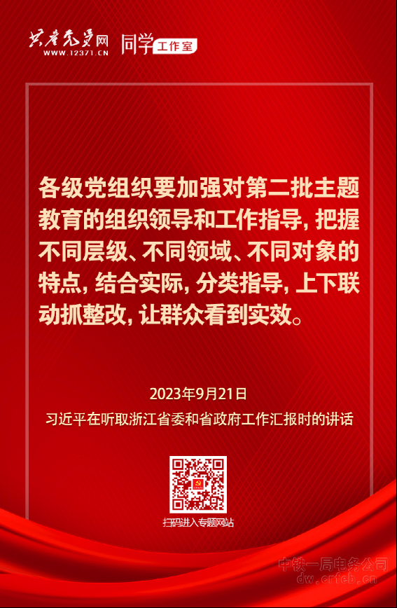 2023年9月21日,習近平總書記在聽取浙江省委和省政府工作匯報時指出,各級黨組織要加強對第二批主題教育的組織領導和工作指導,把握不同層級、不同領域、不同對象的特點,結合實際,分類指導,上下聯動抓整改,讓群眾看到實效?!军c擊學習】