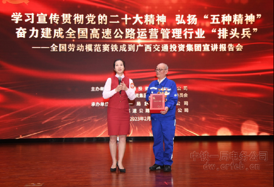 2月24日,由廣西交通投資集團有限公司主辦,中鐵一局集團有限公司、南寧高速公路運營有限公司承辦的“學習宣傳貫徹黨的二十大精神,弘揚‘五種精神’奮力建成全國高速公路運營管理行業‘排頭兵’——全國勞模、全國優秀共產黨員竇鐵成宣講報告會在廣西南寧舉辦。廣西交投集團副總經理陳智杰,中鐵一局集團副總經理尚武孝出席了報告會。