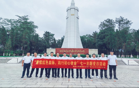 (廣西百色訊)6月28日上午,四分公司廣西片區項目黨支部組織黨員領導干部前往百色起義紀念園,開展“賡續紅色血脈,踐行初心使命”七一主題黨日活動。