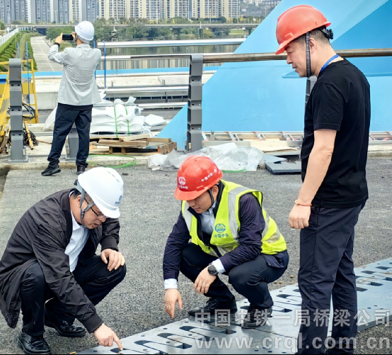 何炯偉一行深入項目現場,對當前工程進展給予充分肯定。他指出,當前項目已進入竣工沖刺的關鍵階段,必須嚴守安全生產紅線,切實加強人員安全管理,落實臨邊防護措施,嚴防外來人員誤入施工區域;要嚴格把控主橋橋面新材料應用質量,確保瀝青路面各項指標符合規范要求;同時注重橋面吊桿與整體橋面顏色的協調統一,著力打造彰顯城市形象的亮點工程。何炯偉特別強調,橋梁伸縮縫施工質量直接關系到后續運營安全和行車舒適度,項目務必高度重視,確保在2025年12月底前全面完成施工任務。