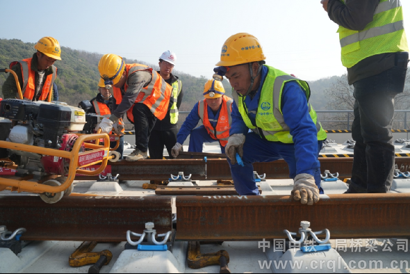 施工現(xiàn)場(chǎng)作業(yè)人員正在連接鋼軌