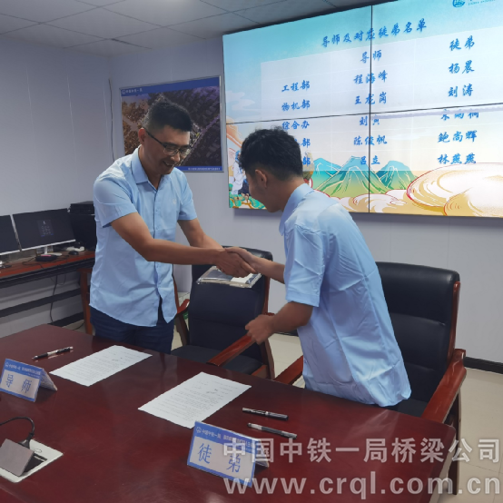 8月7日下午,中鐵一局周口蔡河家園改造項目舉辦2024屆見習生新生見面會暨“導師帶徒”啟動儀式,4名新員工分別與自己的師傅簽訂了導師帶徒協議。