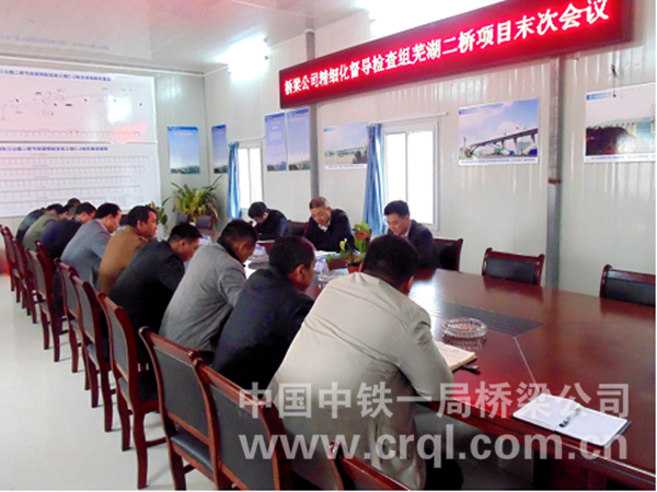 在首次會議上,檢查組首先就橋梁公司首次精細化管理檢查及集團公司精細化管理時提出的整改意見落實情況進行了詳細詢問,并通過施工現場、內業資料、上線運 行情況等三方面進行了詳細檢查,充分肯定了項目的精細化管理工作,并認為蕪湖長江公路二橋項目施工工藝先進,技術含量高,體現了橋梁公司橋梁建設的亮點。