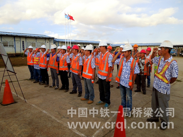 今年六月,是全國第十四個“安全生產(chǎn)月”,這次活動的主題為:加強安全法治,保障安全生產(chǎn)。中鐵一局斐濟(jì)公司非常重視這次活動,要求各項目統(tǒng)一制作了安全宣誓牌?;顒赢?dāng)日,安全員王縣鋒帶領(lǐng)大家學(xué)習(xí)了《關(guān)于開展2015年“安全生產(chǎn)月”活動的通知》文件精神,之后,全體管理人員在安全宣誓牌前進(jìn)行了莊嚴(yán)地宣誓。