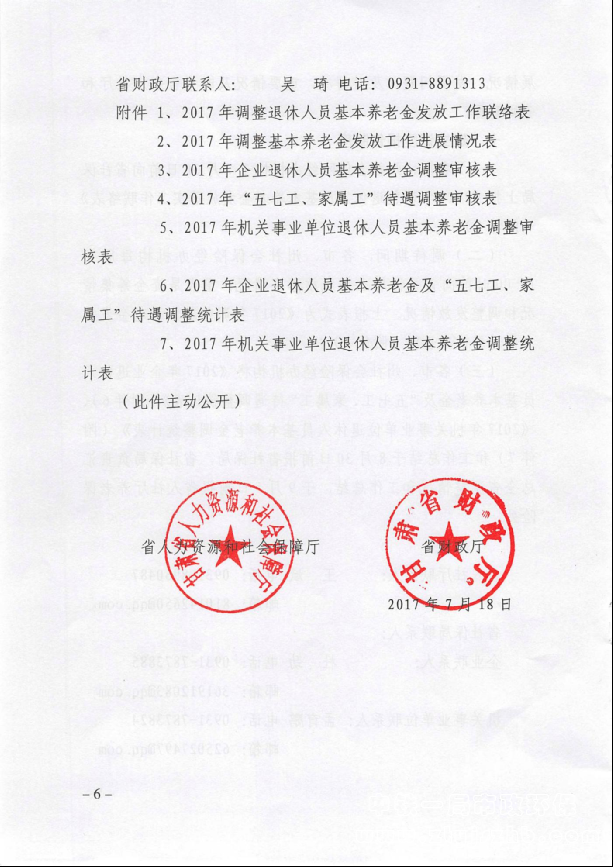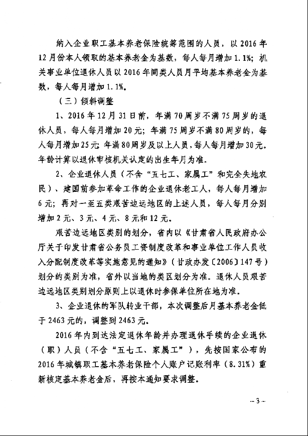 甘肅省人力資源社會保障廳 財政廳 關(guān)于2017年調(diào)整退休人員基本養(yǎng)老金的通知