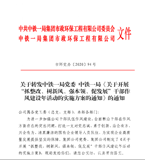 落實集團公司《關于開展“抓整改、樹新風、強本領、促發(fā)展”干部作風建設年活動的實施方案的通知》