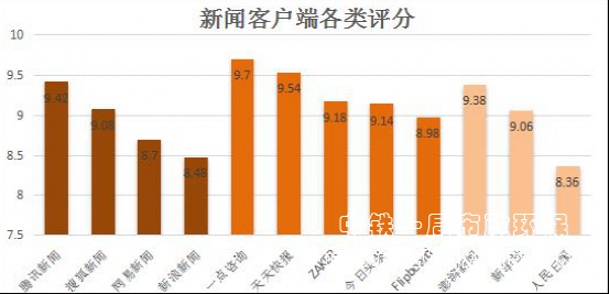 由于存在著自我選擇的因素,對于眾多新聞媒體客戶端的評價更能充分的體現出網民的自我選擇。一點資訊、天天快報的評分居于前列,和一點資訊和天天快報都在客戶端內部的設定有關系,雖然后面的今日頭條和部分客戶端也是在改善自己的客戶端內部的推送結構,但是市場已經被一點資訊和天天快報所掌握。而在這些新聞客戶端里面,娛樂與時政資訊所占比例遠遠大于其余板塊。
