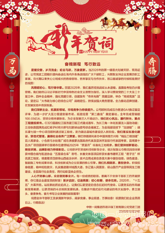 時間:2025年12月31日????作者:黨群綜合部????來源:中鐵一局集團市政環保工程有限公司黨政工團
