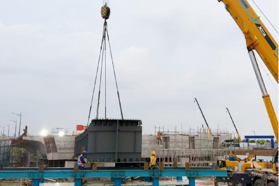 濟南遙墻機場I匝道鋼箱梁首件成功吊裝