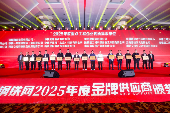 11月15日,第二十一屆中國鋼鐵產業鏈市場峰會暨蘭格鋼鐵網2025年會在北京九華山莊國家會展中心隆重召開。公司憑借出色的資源整合能力和創新的全鏈條服務模式,被評為“蘭格鋼鐵網2025年度優質集采單位”。這也是公司連續三年獲此榮譽。