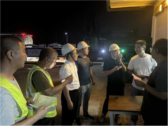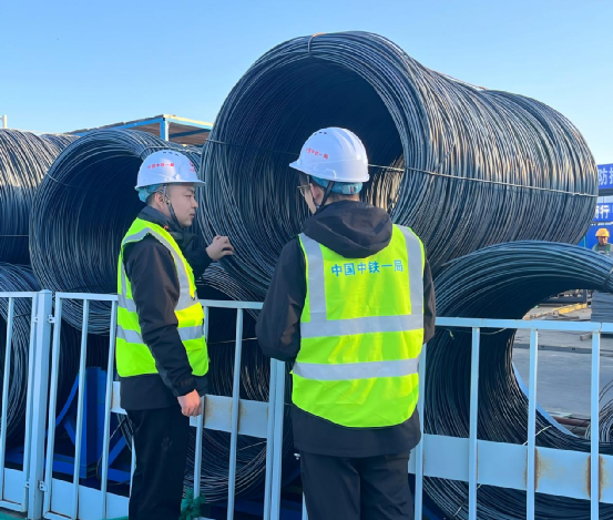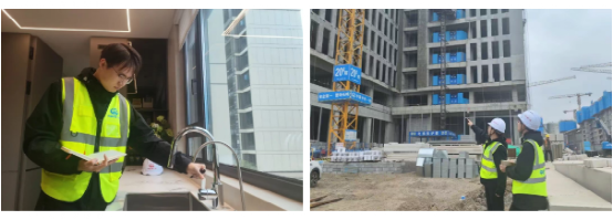 業務人員在施工現場就相關材料進行溝通和查驗