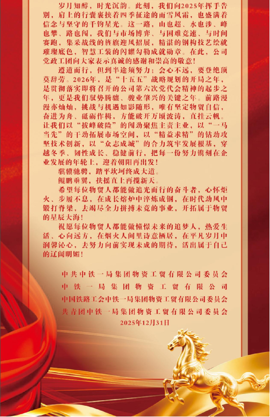 礪行馭勢 新途騰驤——中鐵一局物貿(mào)公司2026年新年賀詞