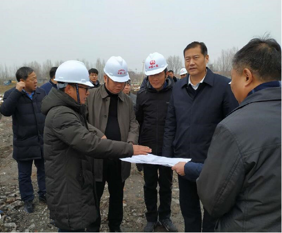 濟(jì)寧市副市長柳景武(右二)查看施工現(xiàn)場