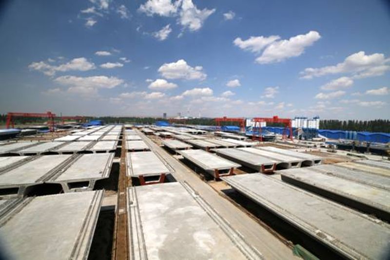 從2016年9月10日進場以來,7天完成400余畝征地任務,11天完成試驗室儀器標定校驗工作,45天成功預制首孔箱梁,2017年1月22日,梁場以優異的成績一次性通過國家生產許可認證審查。3月底,梁場最高日產達到5孔,現在,梁場正以每天預制6孔梁的速度向前推進。