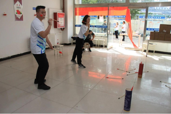 夾乒乓球項目率先拉開帷幕,選手們手持筷子,全神貫注地將乒乓球從一個盆中夾到另一個盆里。小小的乒乓球十分“調皮”,稍不注意就會掉落,但參賽員工們憑借著嫻熟的技巧和沉穩的心態,你追我趕,爭分奪秒。搶凳子比賽則將現場氣氛推向了高潮,每一輪淘汰都讓比賽愈發激烈,選手們的反應速度和應變能力在這個項目中得到了充分展現。投壺項目充滿了傳統文化的韻味。大家動作瀟灑,箭矢精準入壺,贏得陣陣喝彩。單人跳繩項目中,選手們身輕如燕,跳繩在他們腳下快速飛舞,令人目不暇接;多人跳繩項目則更注重團隊協作,大家默契配合,隨著繩子的節奏一起跳躍,展現出了良好的團隊精神。
