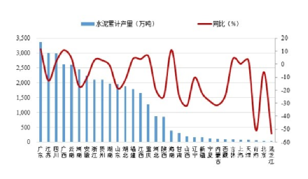 圖6:2018一季度各省市自治區水泥產量及增速情況